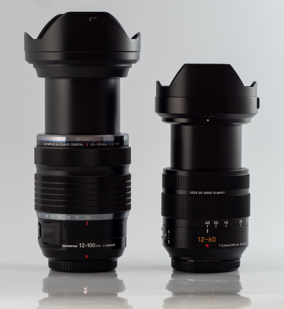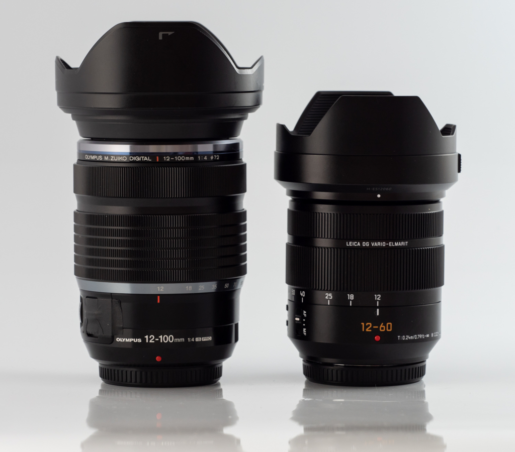 いずれも左側が12-100mm F4.0、右がLEICA 12-60mmになります。