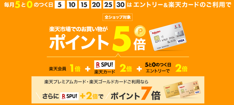 楽天カードで+2倍、楽天プレミアムカードだと4倍になります。