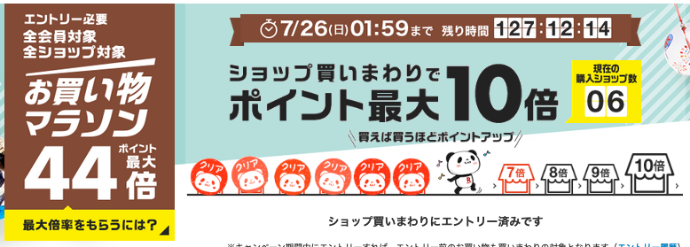 - お買い物マラソン期間中は買った店舗数ほどポイントが増える +9倍