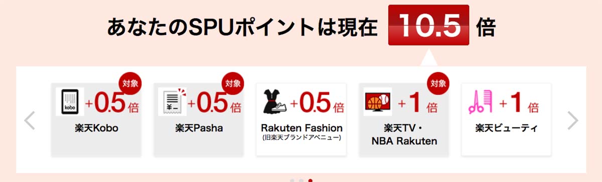 楽天のサービスを色々使うことで、その月にもらえるポイントが増えていくんですよね。