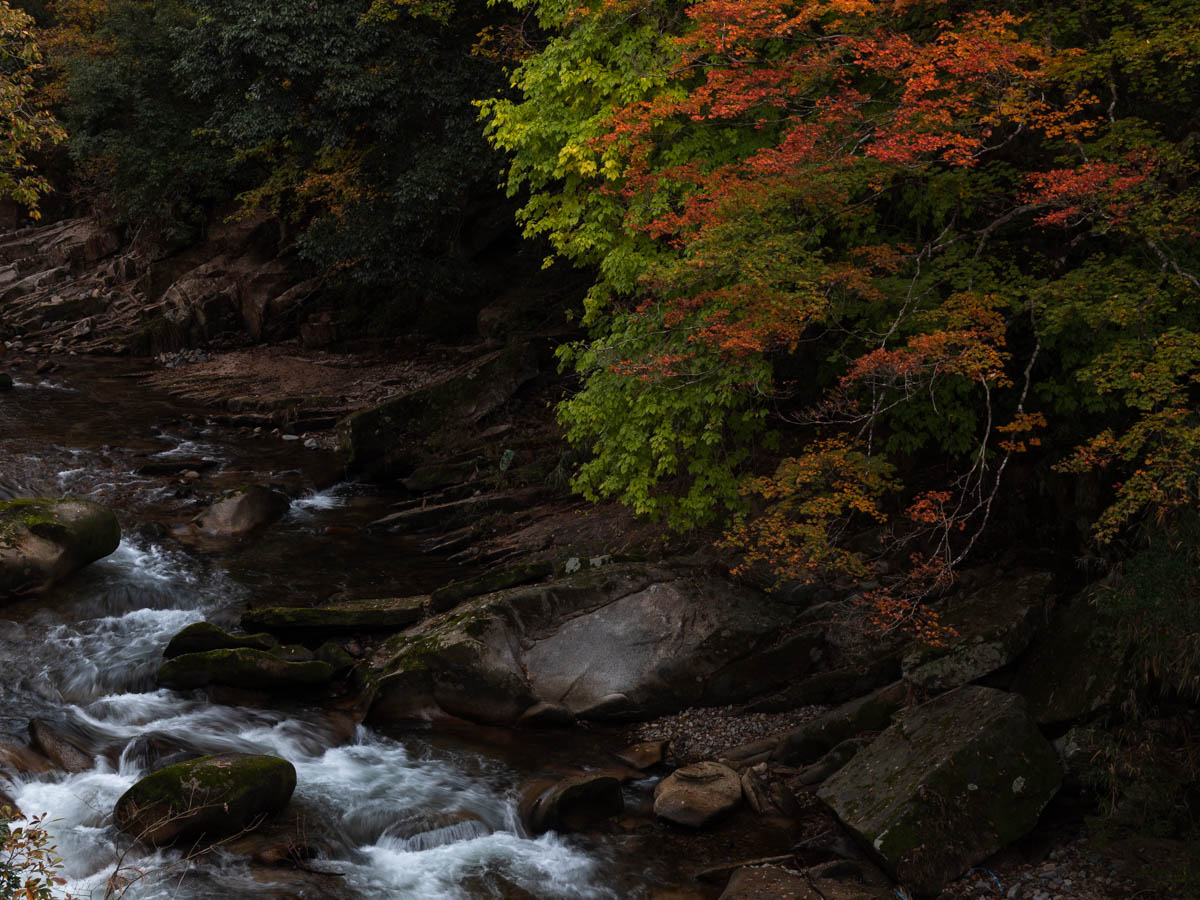 自分も、渓流を長秒で撮りたいなと思い三脚を持参しましたが、意外と水の流れをすっきり撮れるスポットがありません。